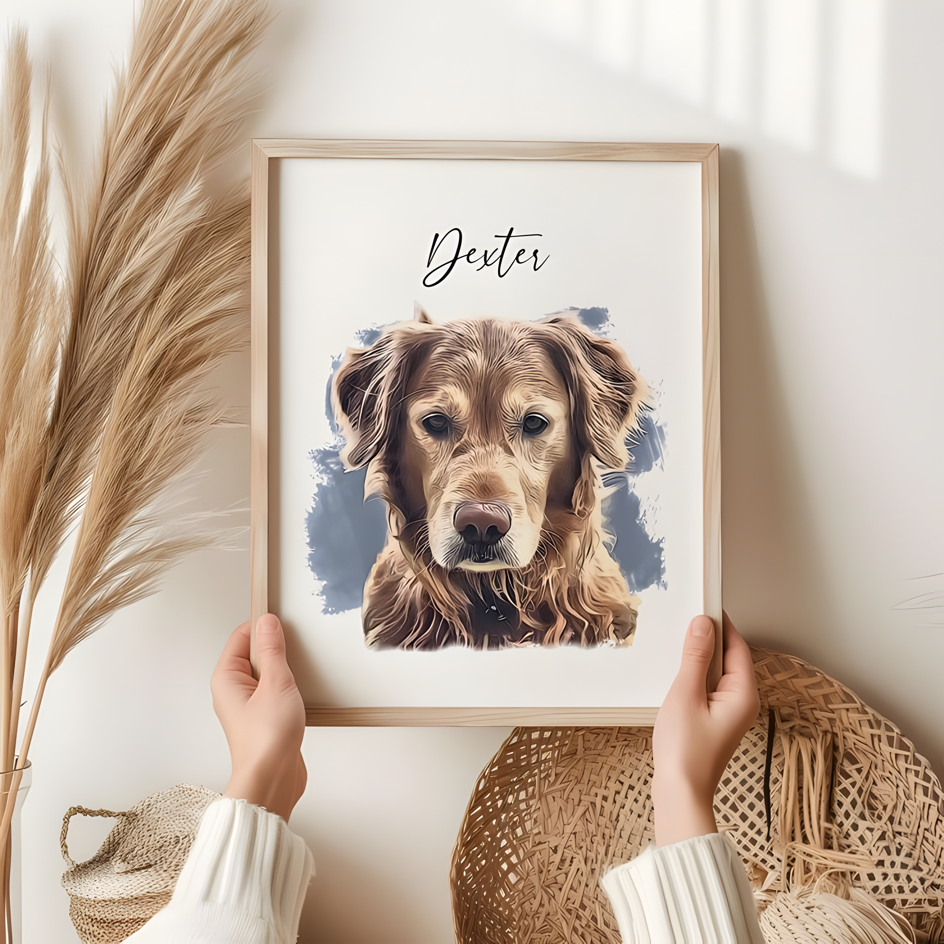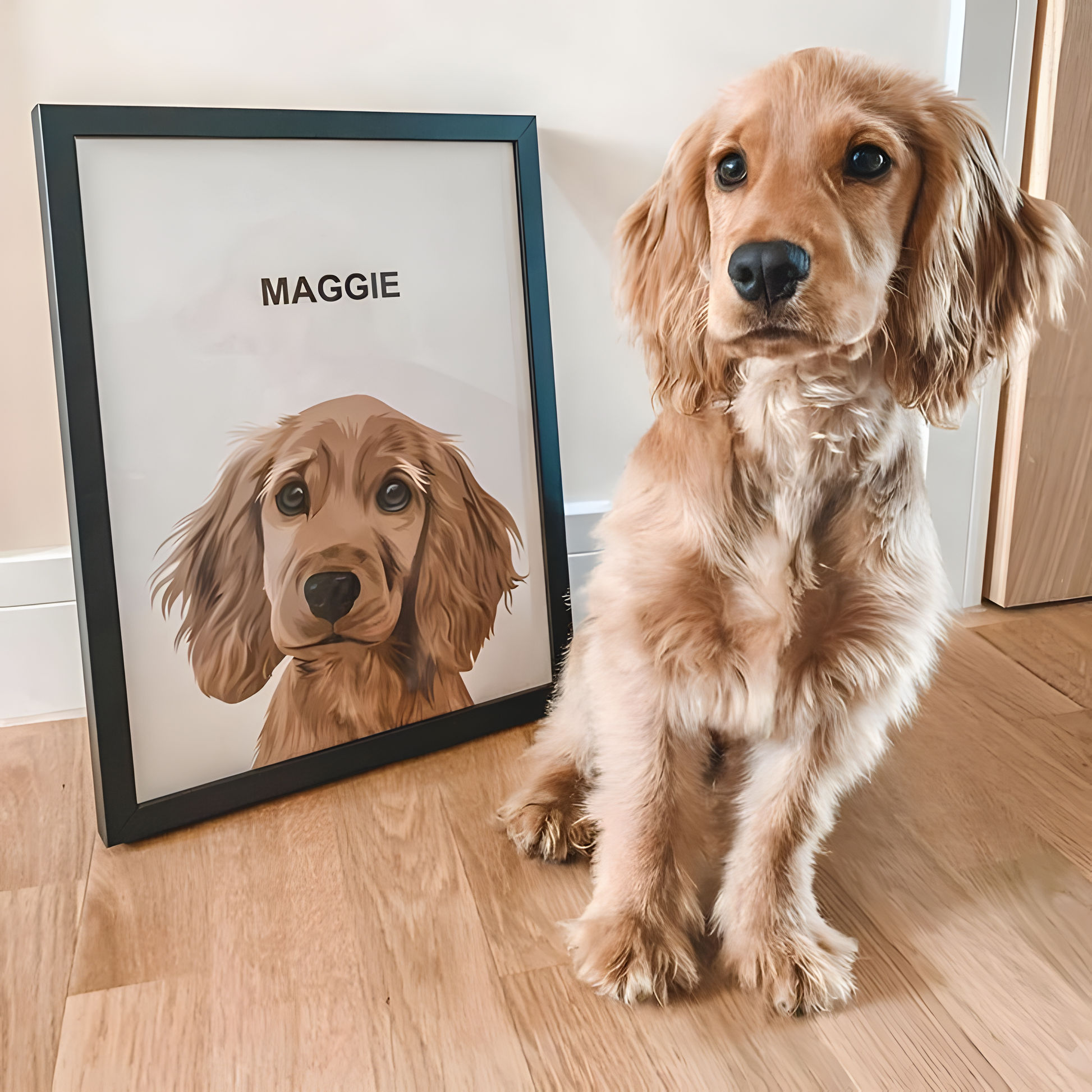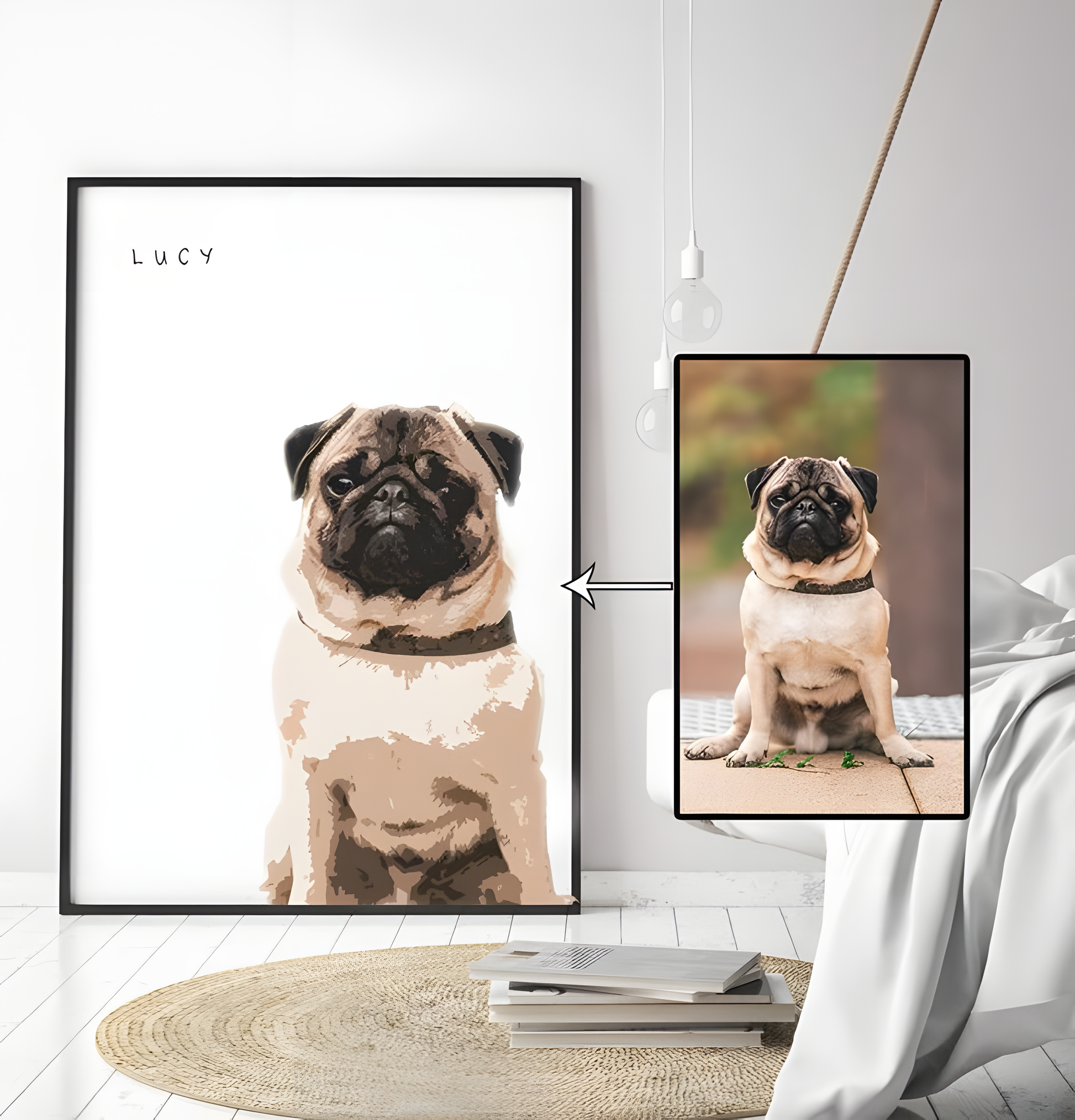 🐾 Immortalize your beloved pet with a custom AI-generated portrait, beautifully printed and framed. Just upload a clear photo of your furry friend, select your preferred style and size, and we’ll handle the rest — from digital creation to doorstep delivery.